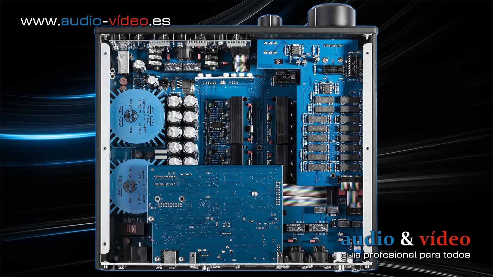- 2 transformadores toroidales, > 35.000 uF de capacidad de filtrado