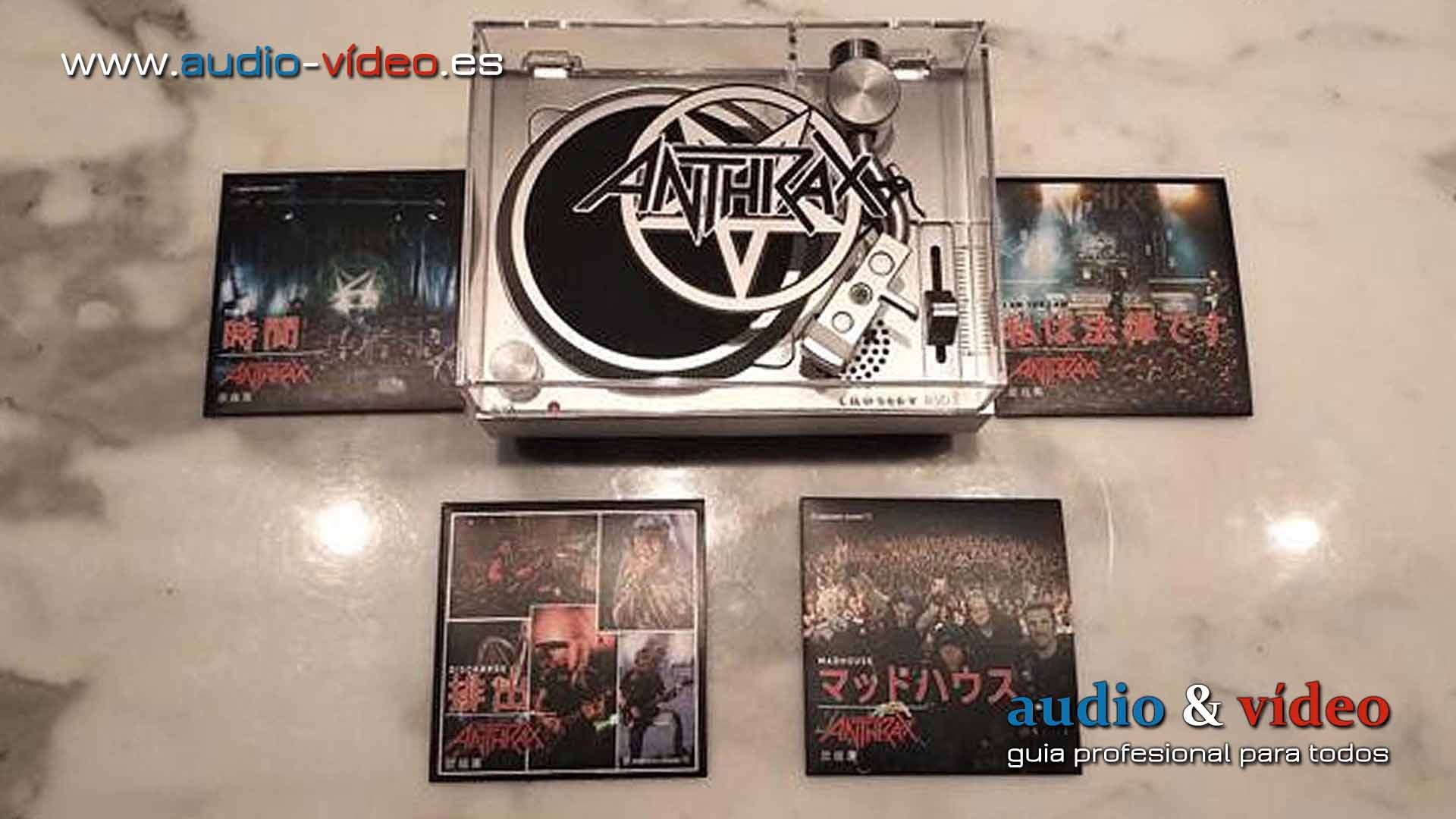 ANTHRAX presenta un mini tocadiscos dedicado para su 40 cumpleaños. La banda de música Anthrax lanza una pieza de coleccionista en un pack del Record Store Day, que viene con cuatro discos de vinilo de tres pulgadas.